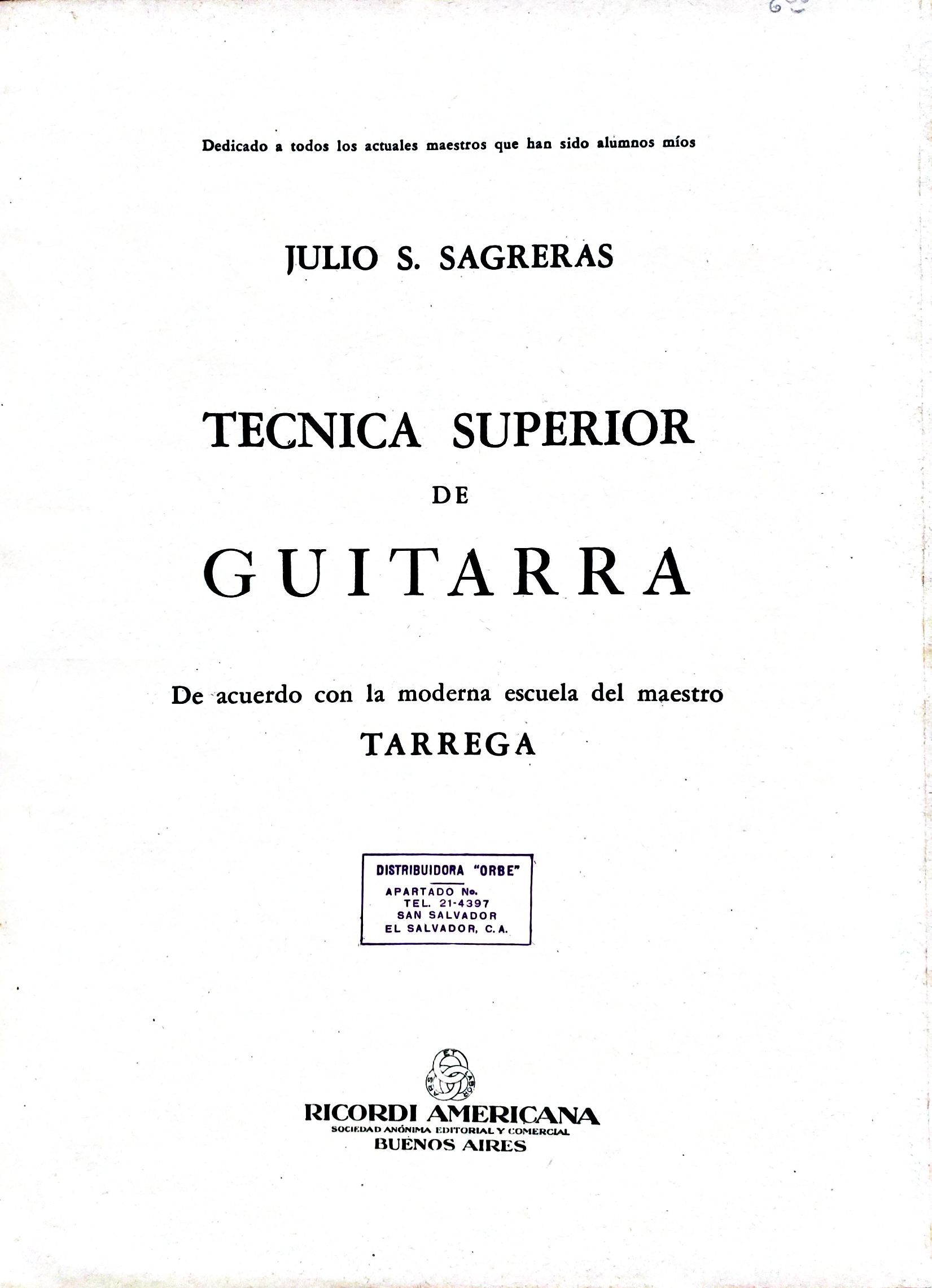 Técnica Superior de Guitarra. De acuerdo con la Moderna Escuela del Maestro Tárrega.